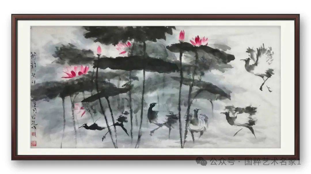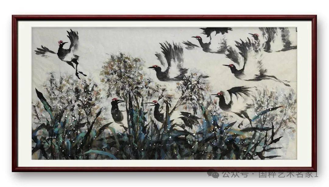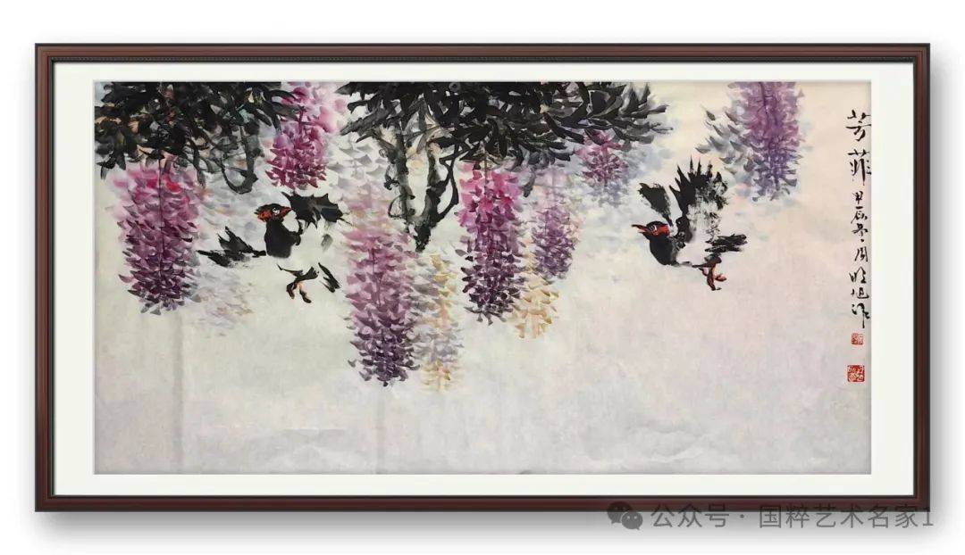 郭明旭的画有自由放意的笔墨气息,还有优美动人的自然造型,可以令上品丹青技法作出龙脉传续。师而不拘,又善于自立面目,先生的丹青艺术画作还能进一步的融合现代艺术审美,使作品在不脱离古法的同时,又能充分地展现出时代的结构美感。其鲜明的艺术面貌和深厚的创作体悟,不仅让先生得以享誉,更是为当今花鸟画艺术的传承与创新出现了一个新样本。