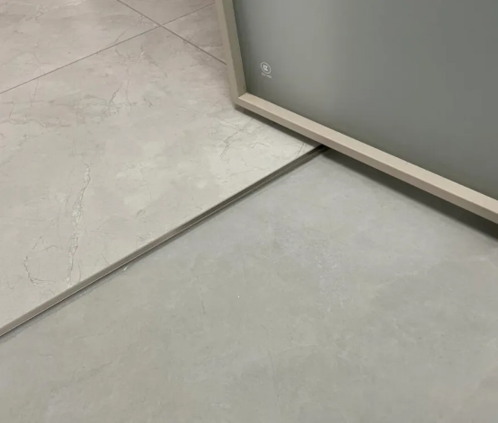 还不如把屋内的瓷砖直接铺到卫生间门口处,然后在瓷砖侧面安装下沉式的不锈钢收口条,简洁大方。