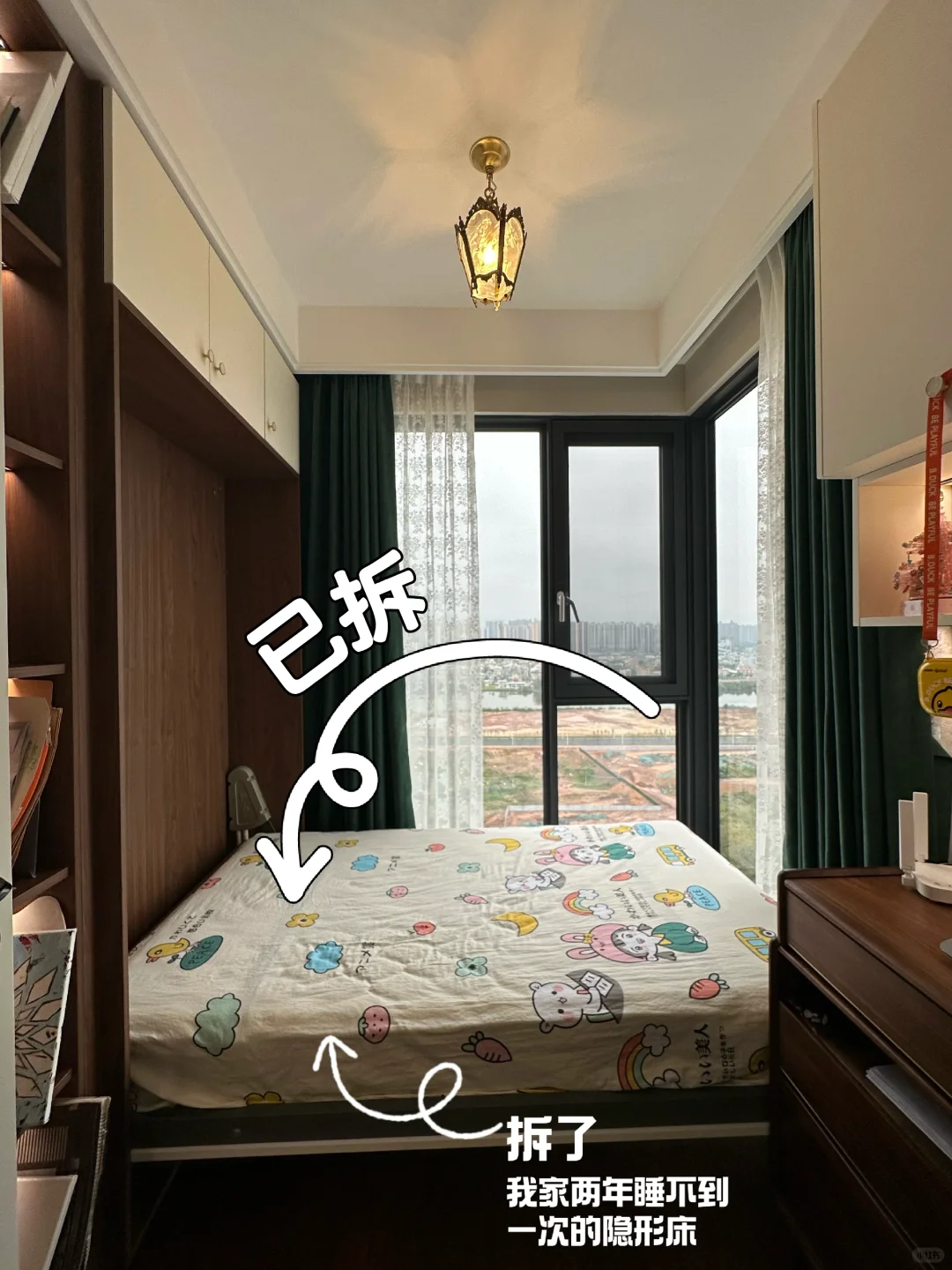不用的时候将它折叠起来,实现隐形,也不会耽误这个房间的使用。我入住一年后肠子都悔青了,别说客人了,就连父母来了都不爱留宿。