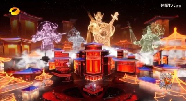 赛博朋克科幻片场景照进现实,湖南卫视在有限的空间制造了一座城市的夜景。《云宫迅音》节目里“天王降临”气势磅礴的呈现,基于实景舞美1:1数字孪生建模技术,让虚拟与实景实现无缝衔接。
