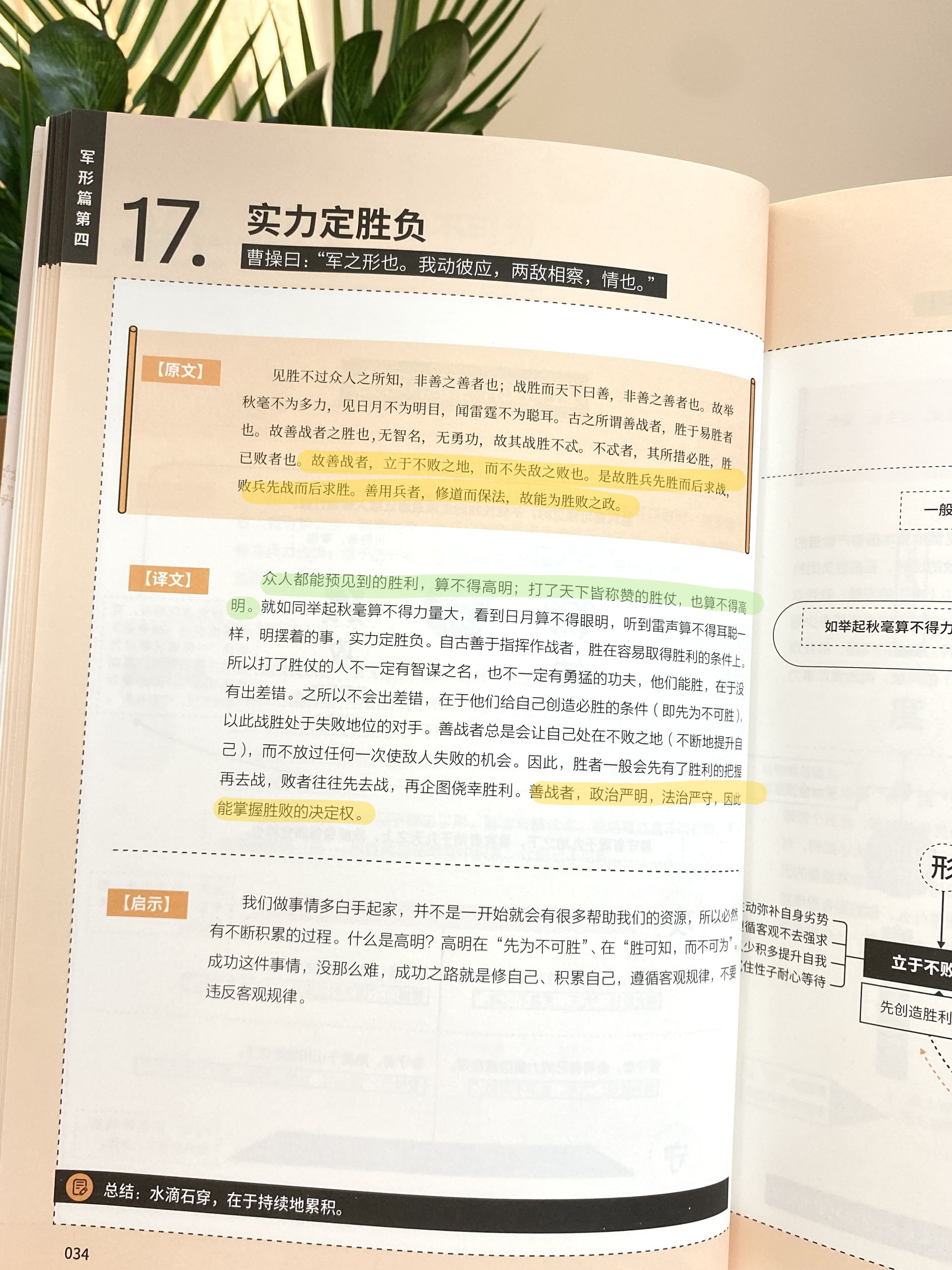 我看过很多有关《孙子兵法》的解读,个人比较倾向于郭化若将军的分析,有力量感,简洁明了。若想要详细读,可看《十一家注孙子》、李零教授的《兵以诈立》,都非常详细。要知道,《孙子兵法》本身并不具体,更多的是靠自己去悟,千万别扯上商业案例或者转化为商业化思维。结合商业化思维很容易硬套,因为商业化思维也是在变的。对本文的有些解读似乎都忘了形,解读来解读去,前后孤立是不可取的。本文依然是在讲“形”,形胜就是在等待中积累,让自己不可胜。