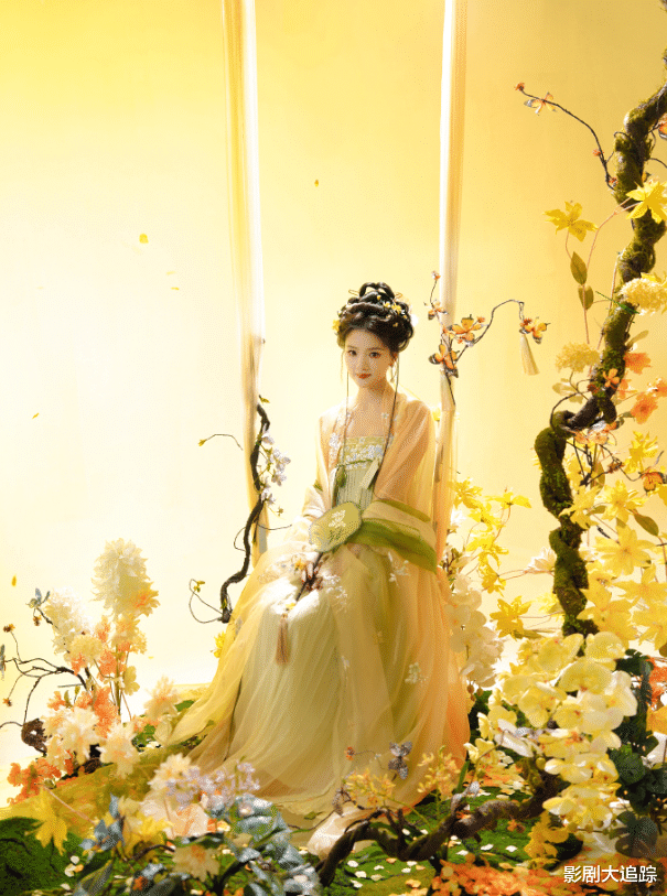 古灵精怪的她,即便是坐着秋千也不安分,秋千轻轻晃动,带来阵阵花香,蝴蝶随之舞动,她抬手轻抚微动,只觉要随风而去,仙人之姿尽情展露!
