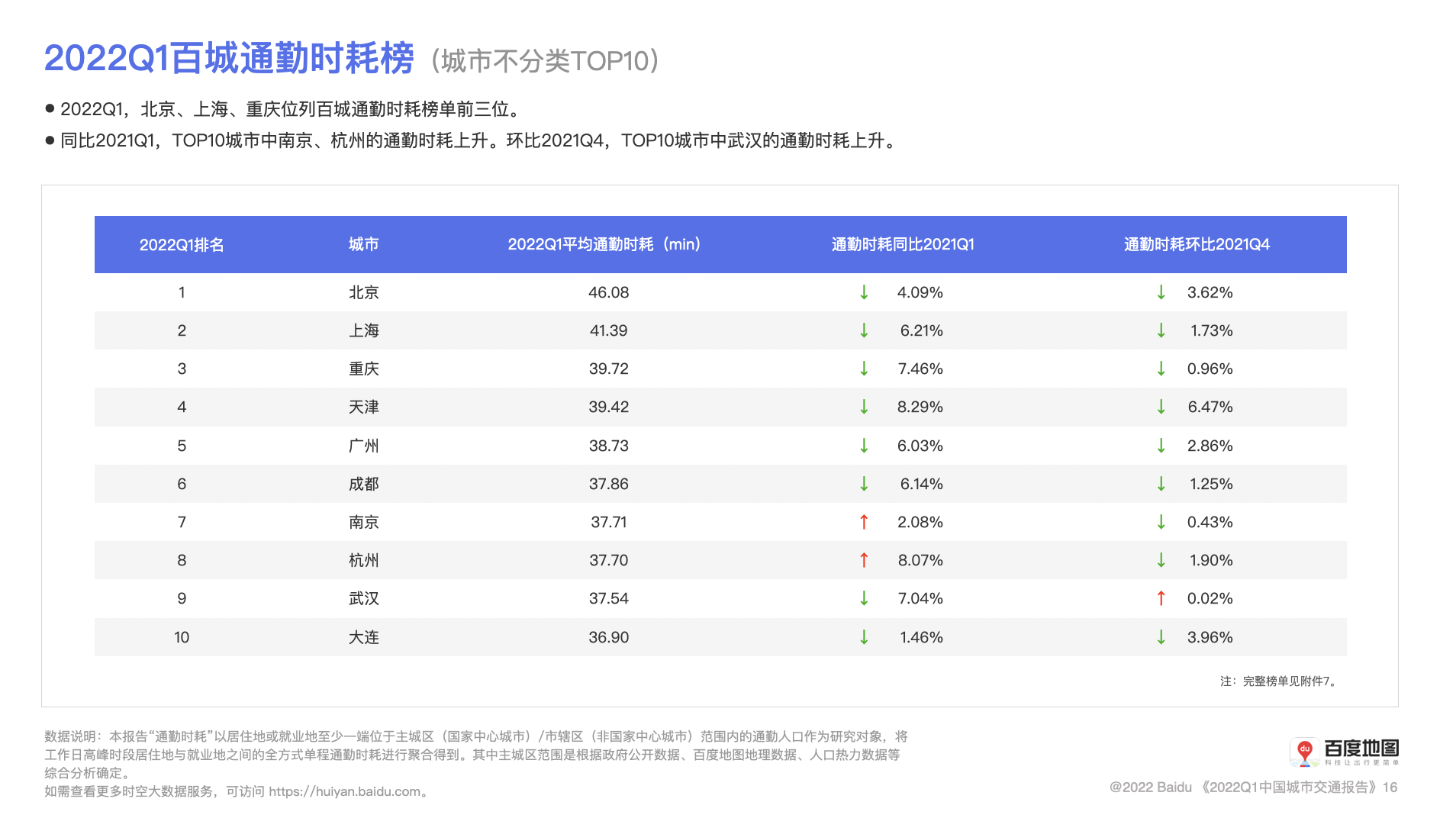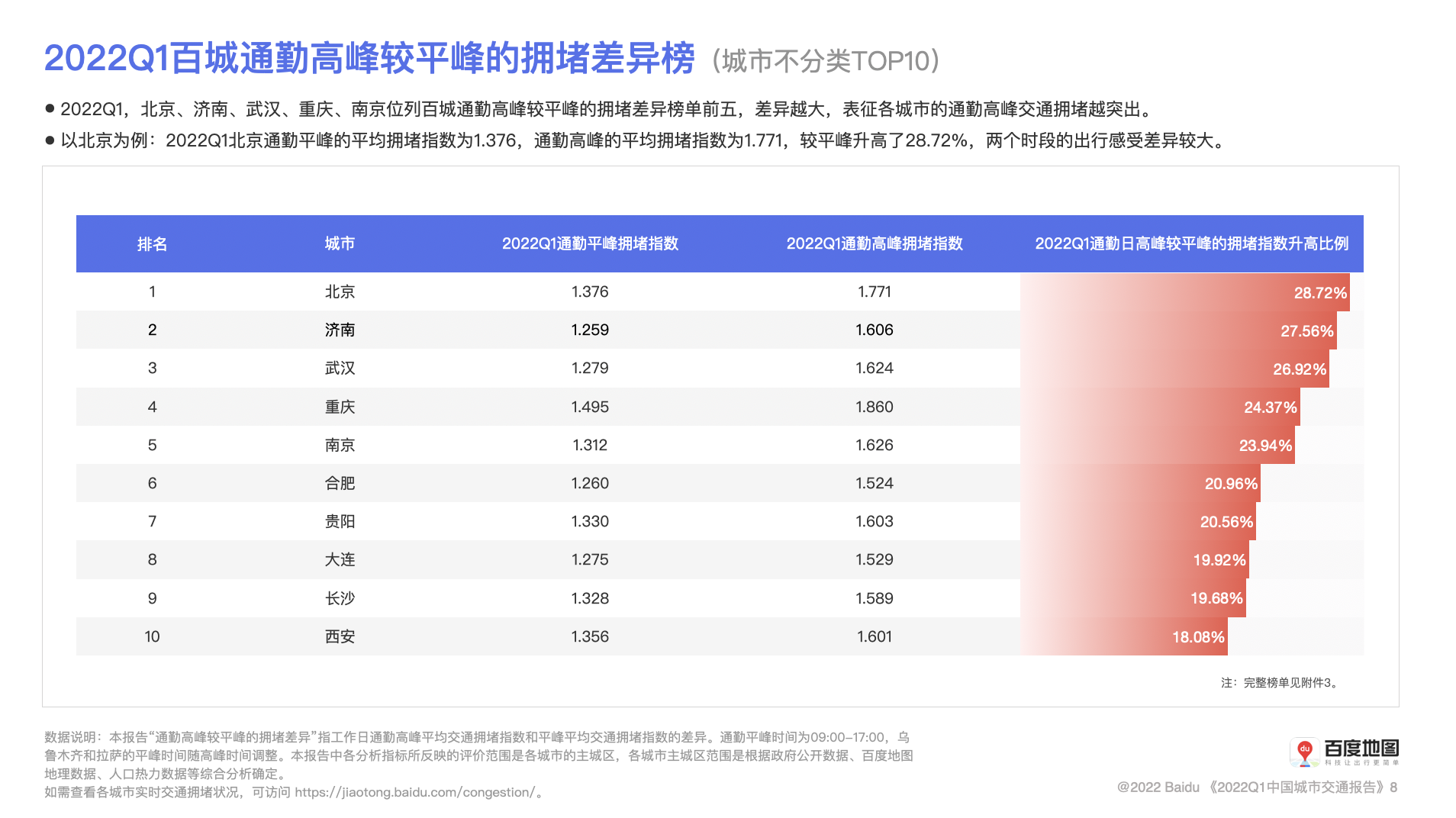 (2022Q1百城通勤⾼峰交通拥堵榜)