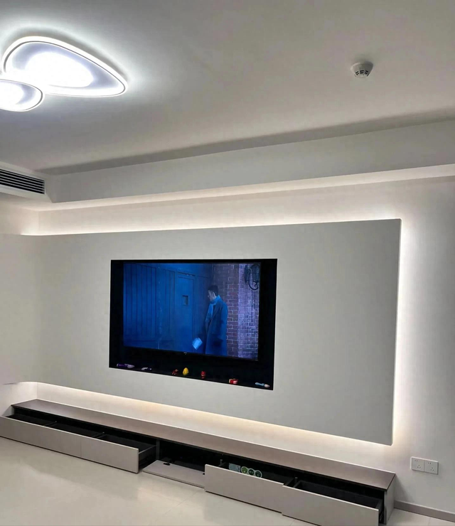所以都改成落地电视柜形式,这样做不仅好看,还实用,更不会存在卫生死角。