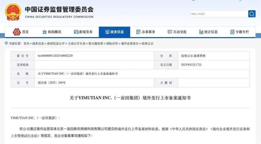 继极氪、文远知行等明星企业后,农业电商独角兽一亩田集团将于2月17日获中国证监会境外上市备案,拟登陆纳斯达克。