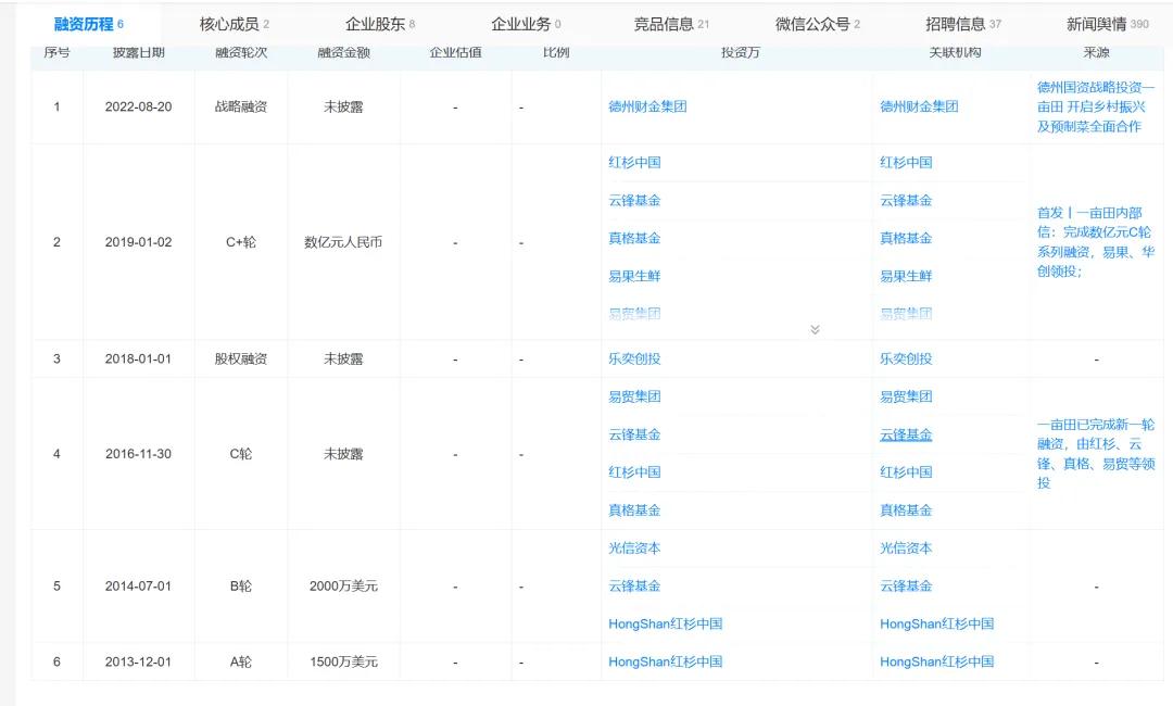 短短四年时间里,一亩田便获得数千万美元融资,其中红杉资本中国参投至少两轮。