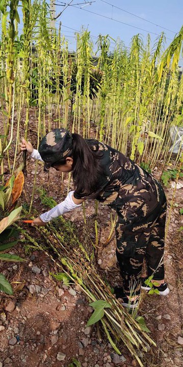 他按照别人的建议,在芝麻生长的一个关键时期,大概是芝麻苗长到大概15厘米高的时候,开始准备打盖顶肥。这个肥料啊,都是他自己精心调配的,用了一些农家肥,再加上一些从附近山上采回来经过处理后的草木灰。你可别小看这草木灰,它里面含有很多对芝麻生长有益的矿物质呢。