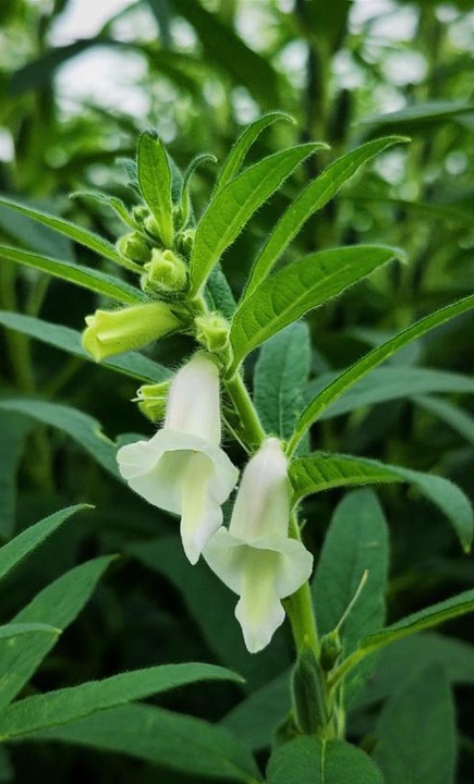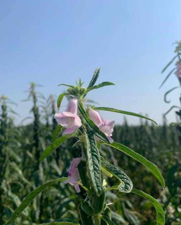 这让他特别兴奋,他就想啊,难道这就是盖顶肥的效果?随着时间的推移,到了芝麻开花的时候,他发现芝麻的花开得特别旺盛,一朵挨着一朵,就像一片白色的小海洋。这在以前可是很少见的,以前他的芝麻花总是稀稀拉拉的。而且啊,这些花朵的颜色特别鲜艳,在阳光的照耀下,就像一颗颗闪闪发光的小星星。