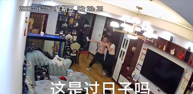 视频内容显示,男子正在被妻子拉拽殴打,视频长达一分多钟,时间显示是6月16日凌晨2点多。