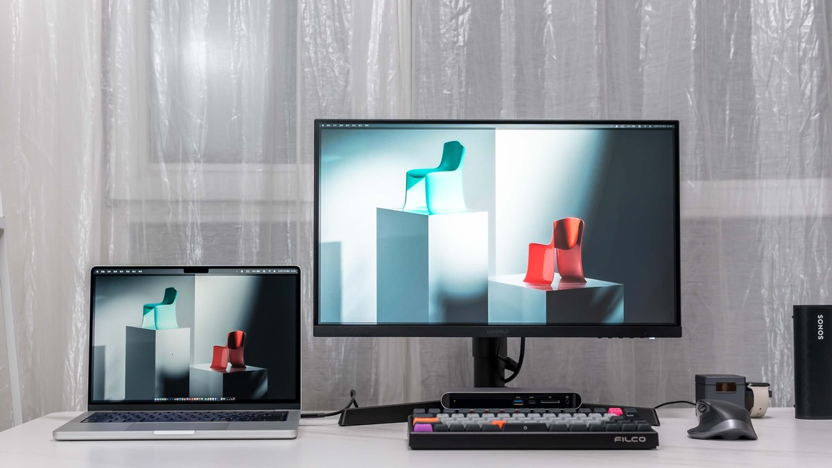 色彩方面:显示器支持DCI-P3 90%色域空间,作为 MacBook Pro 外接显示器,显示效果也比较不错,特别是考虑到它七百多元的价格,下图是 MacBook Pro 外接科睿 X41Q的色彩效果,图片有所压缩,实际效果更好一些。
