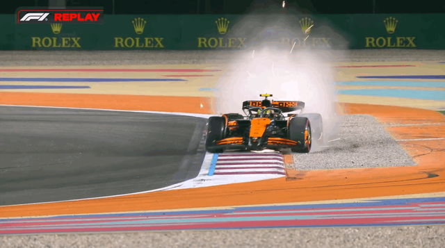 阿隆索的第一圈因为超出赛道限制成绩被删除。诺里斯因为5号弯的失误,放弃了第一圈。