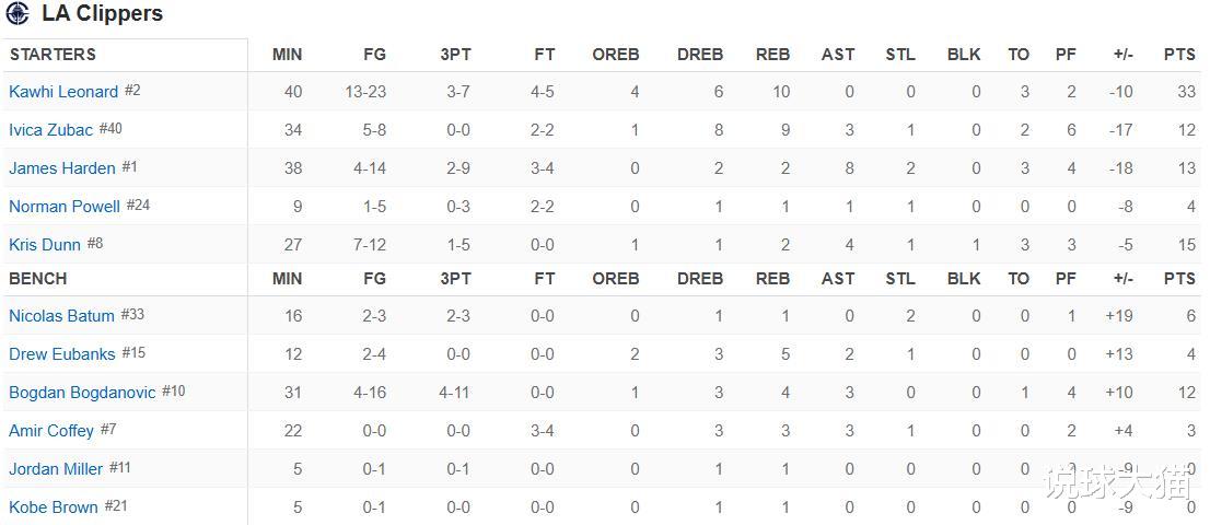 巴图姆是本场比赛快船正负值最高的球员,达到了+19!其投篮3投2中,拿到了6分1篮板2抢断;而博格达诺维奇砍下了12分,正负值为+10。
