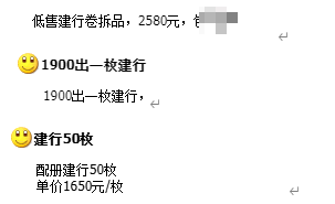 大家的建行币放在手中变不了现,关键是建行比较占资金,因此,为了抽出资金去炒作其他纪念币,只能是低价出售变现。而大量的抛售,更是加剧了市场压力,造成价格持续下跌。