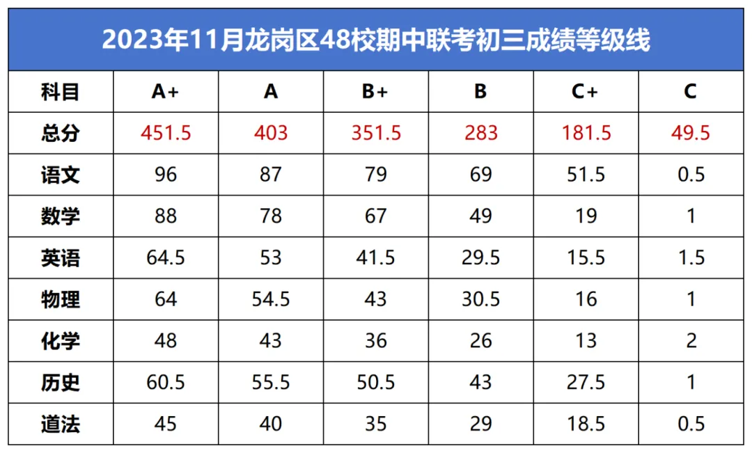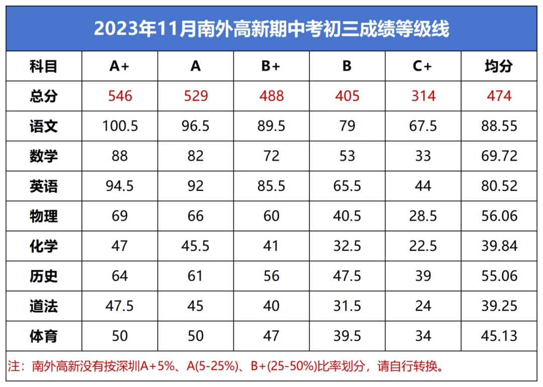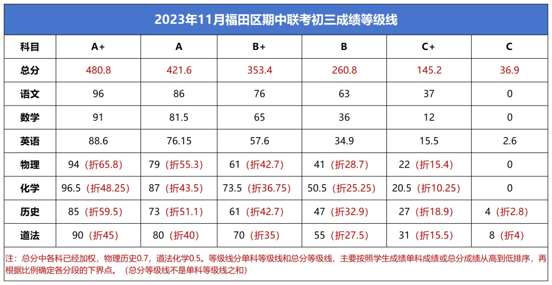23年11月期中考等级线2023年深圳部分区和学校初三期中考等级线(仅供参考):