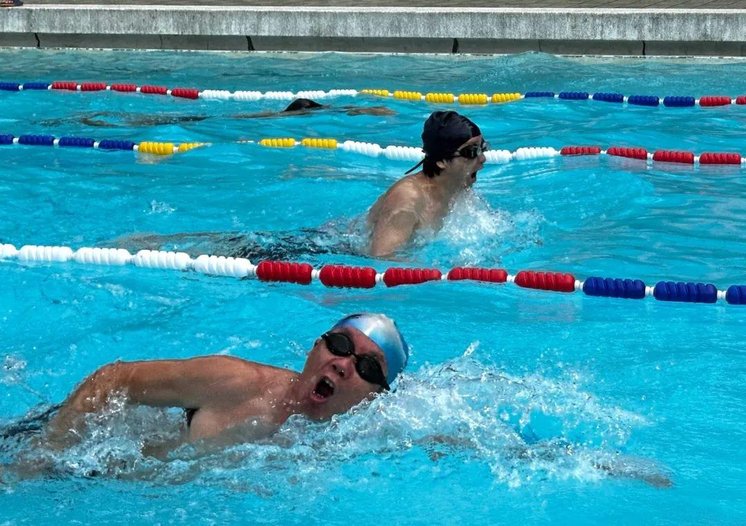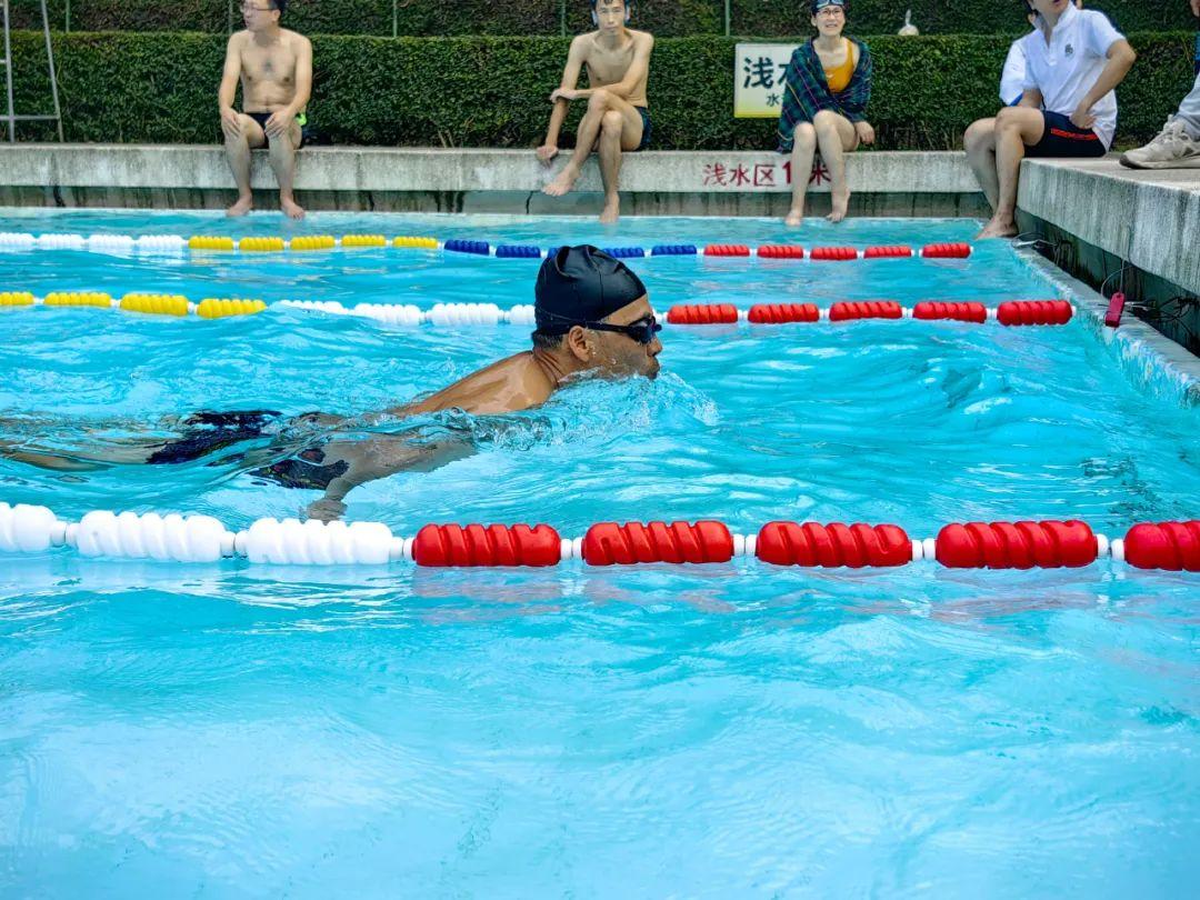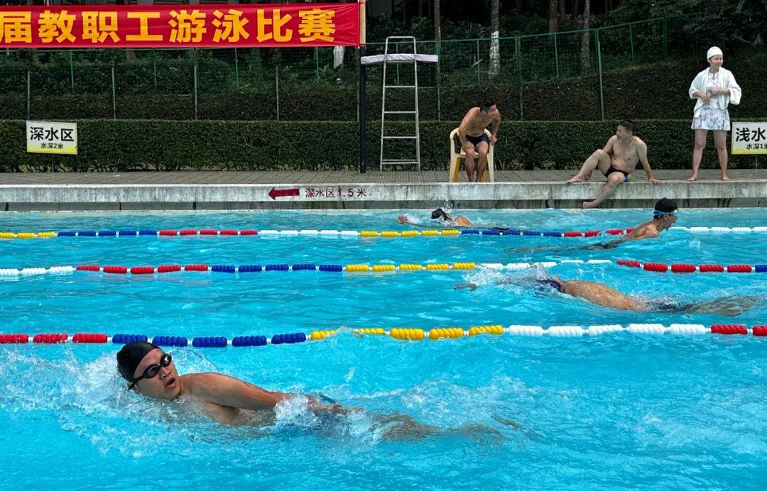 比赛现场气氛热烈,加油声、欢呼声此起彼伏。大家为老师们的精彩表现呐喊助威,每一个精彩的瞬间都引来阵阵喝彩。老师们在比赛中展现了游泳技巧,更体现了顽强拼搏、永不放弃的体育精神。