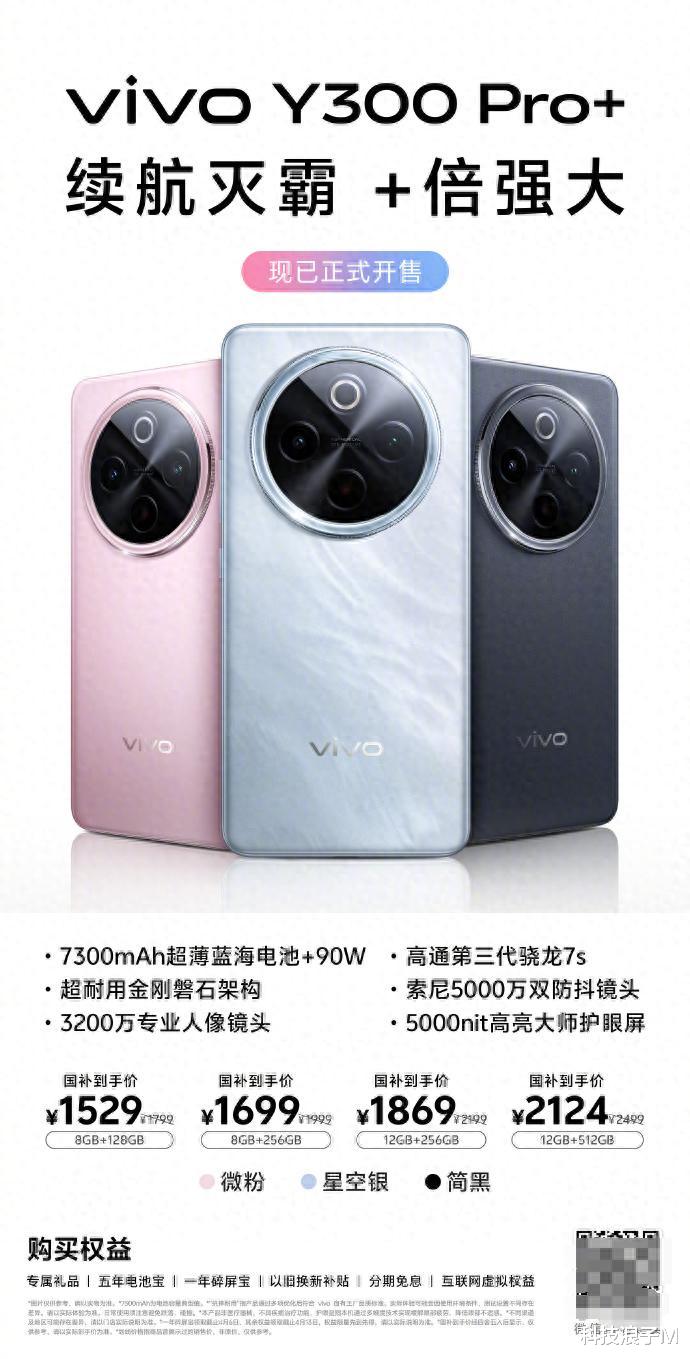 vivo Y300 Pro+这次把高级感玩明白了——微粉配色像樱花落在珍珠贝母上,星空银的流动纹理仿佛把银河握在掌心,简黑磨砂背板低调却充满力量感。更绝的是双面全等深微弧设计,贴合手心的弧度让人一拿起就舍不得放下。vivo Y300 Pro+正式开售,作为vivo性价比系列的又一力作,新机在续航、性能与设计等方面均实现了突破升级。