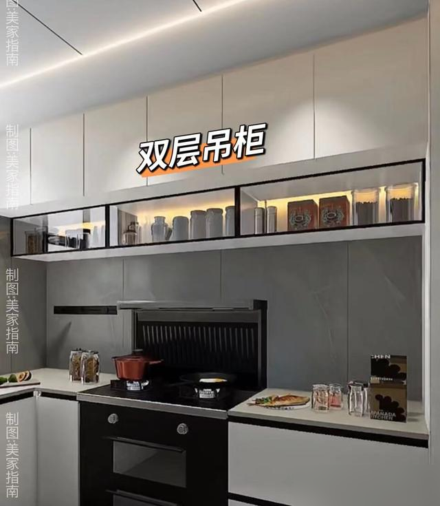 文章里说的“双层吊柜”真是救星:上半层放不常用的锅具、节庆餐具,下半层挂调味瓶、杂粮罐,高度刚好抬手就够。