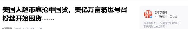 新民周刊:2025-04-05《美国人超市疯抢中国货,美亿万富翁也号召粉丝开始囤货……》
