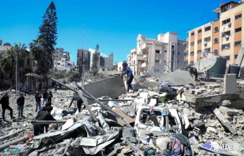3月19日,在加沙地带北部加沙城的一处社区,人们在以军袭击后的废墟中搜寻(资料图)