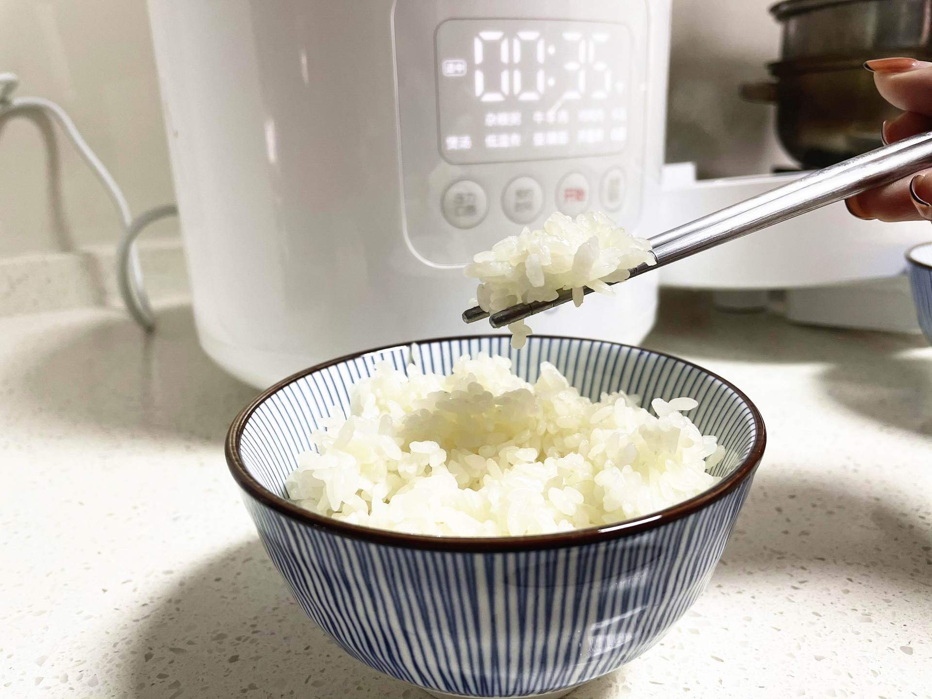 1杯米+适量水,P4档位,开启米饭模式,蒸煮好的米饭面上看上去比较干,但内部的米饭软硬适中,底部也没有锅巴,对于习惯口感较硬的人群来说开启P2档会比较合适