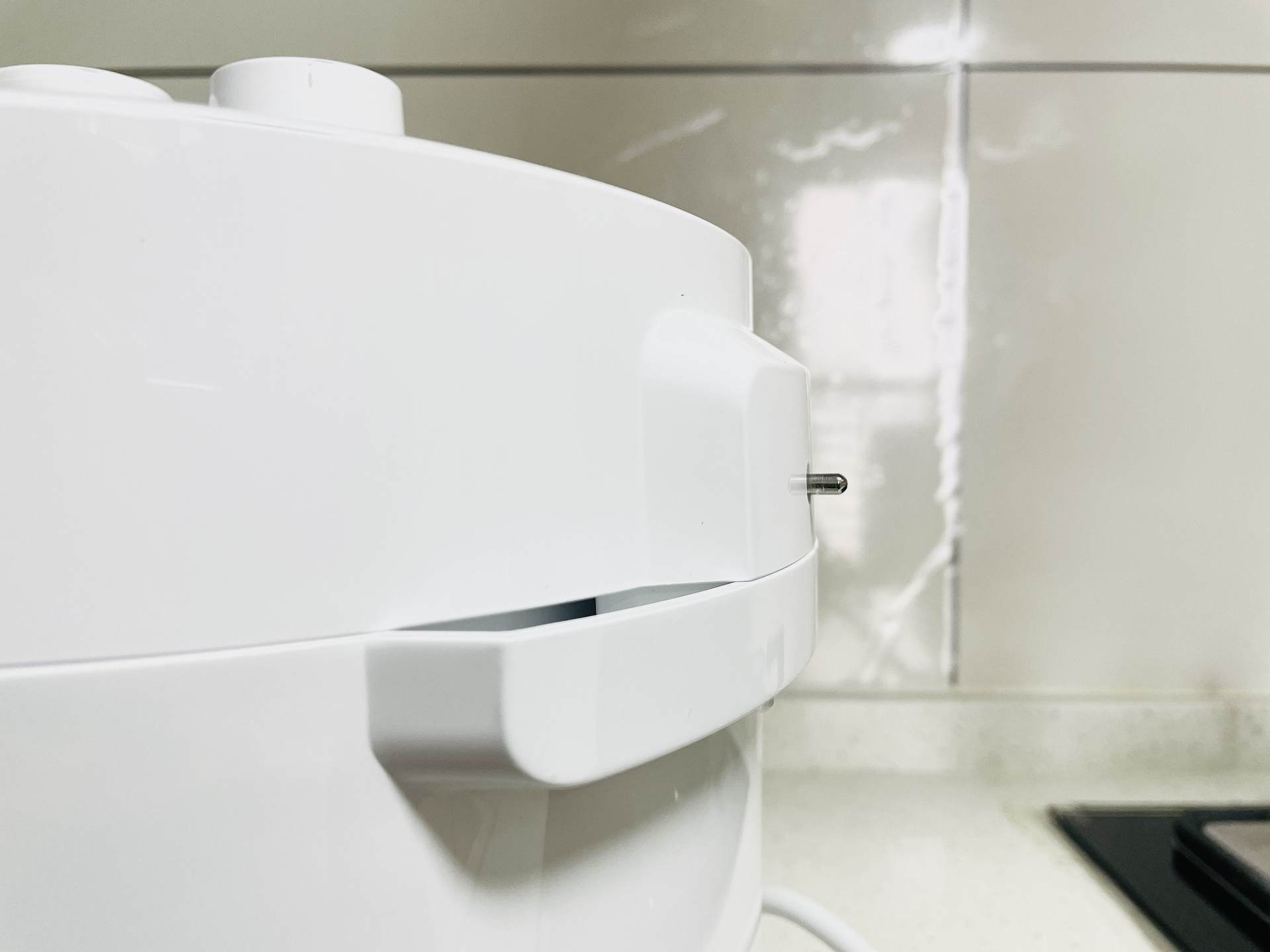 ▼锅盖后部的锁止卡槽保证了锅体的密封性,同时在显示面板可以看到锅盖的开启和关闭状态
