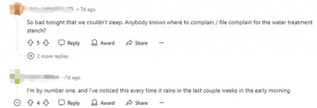 “我在一号路附近,我发现过去几周,只要一下雨,早上起来都会特别臭。”