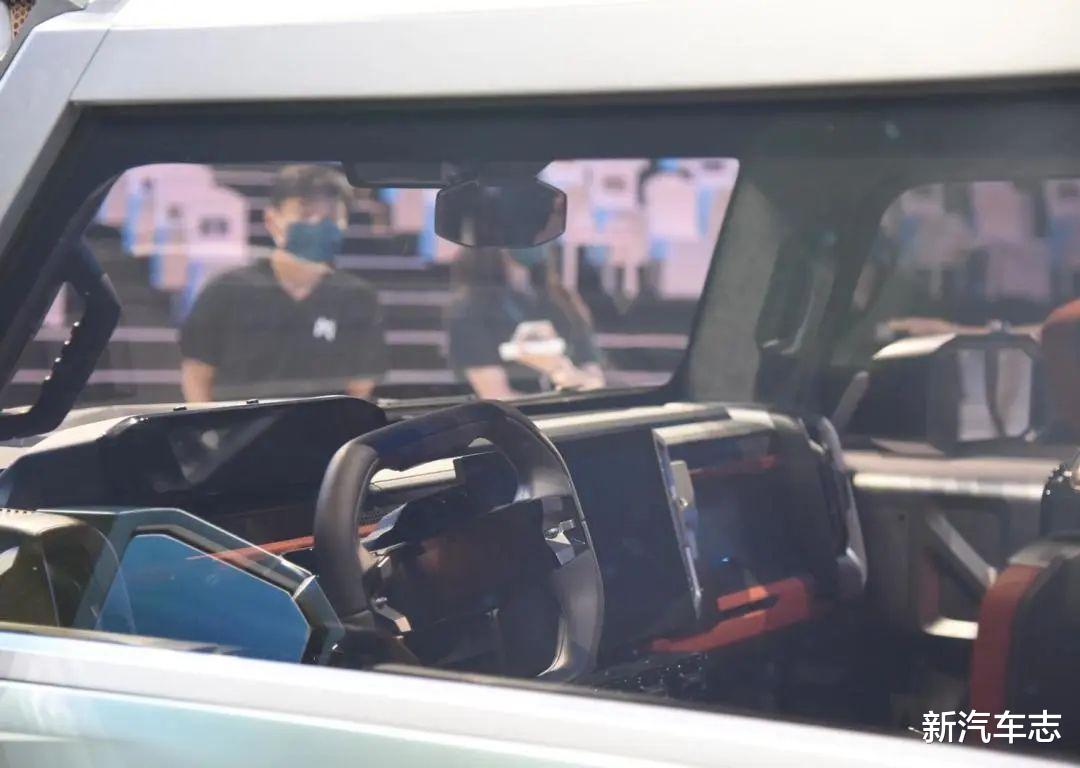内饰方面没有公布,不过从现场拍摄的照片来看,概念车内部采用了非圆形方向盘,方向盘中央疑似为显示屏,算上液晶仪表盘、中央的超大屏幕和一块疑似的副驾驶屏幕,那该概念车上总共有四块屏幕,这可能在量产车上也会相应精简。车内布局采用六座和四座,同时也会有三门版和五门版。