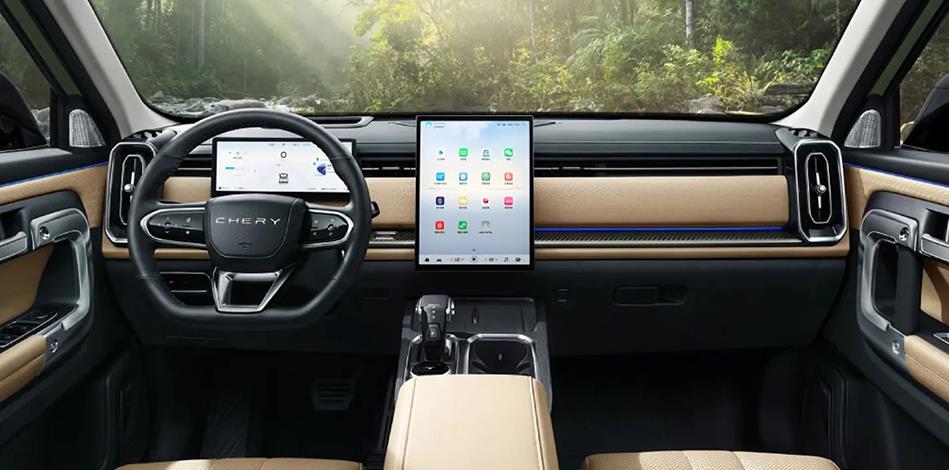 前脸超大尺寸的矩形进气格栅,内部采用了熏黑的处理,并搭配了奇瑞“CHERY”英文logo,进一步增加了硬朗属性。