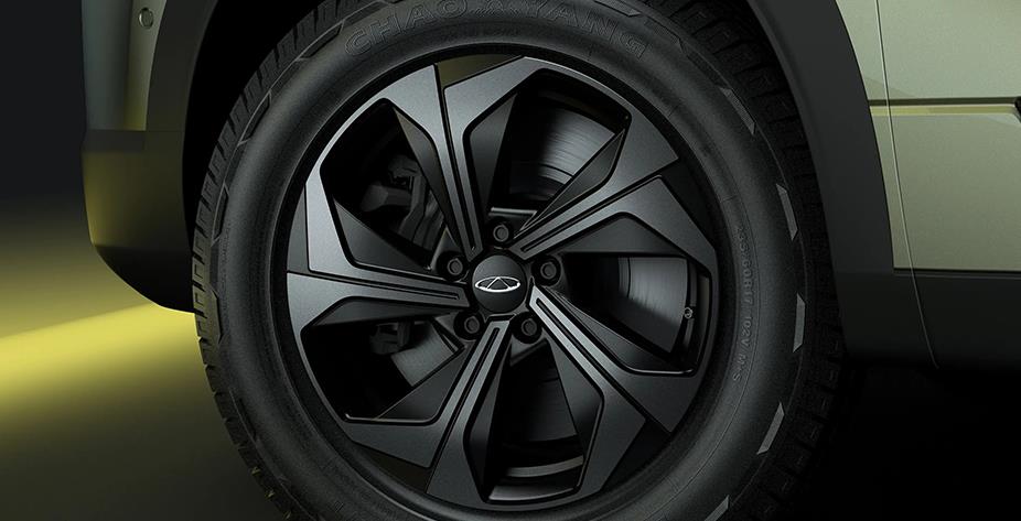 轮毂采用了黑色+银色搭配的多辐式设计,采用了固铂EVOLU-TIONCTT系列轮胎,尺寸为235/50R19,主打舒适性。