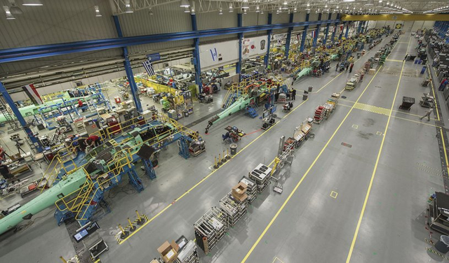 除此之外,还有先进的拉动式可视化看板管理技术。采用这种技术后,各个部门可以立即清除看到各个工位的状态(正常,超前或者拖期),发现问题可以立即引起注意,也能实现最少的库存和浪费。库存有序的分布在各个工位,而不是全部堆积在一个飞机制造点上,造成更多的混乱和浪费。