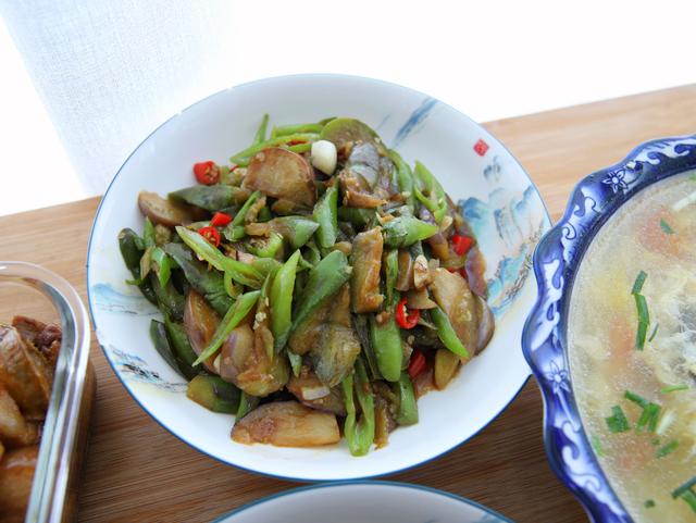 这个小炒茄子是特别受欢迎的一个下饭菜,我们家一个夏天吃了好多回,把茄子切成小小的滚刀块,不要切太大,锅里多倒点油烧热,烧茄子要多店油才好吃,油热后下入茄子炒软,然后加入蒜末,青红辣椒炒至断生,加盐,鸡精,生抽,蚝油,少许老抽,一点点糖提鲜,如果太干可以加一些清水,翻炒至茄子变软即可盛出,简单美味又下饭。