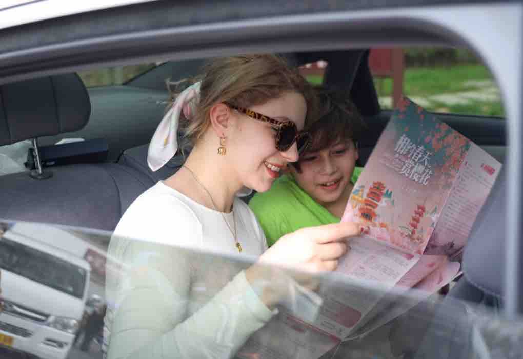 国际游客乘坐岚图追光“赏樱专驾”