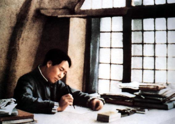 那天晚上,毛主席一个人闷头坐在桌子旁边,啥话也没说。