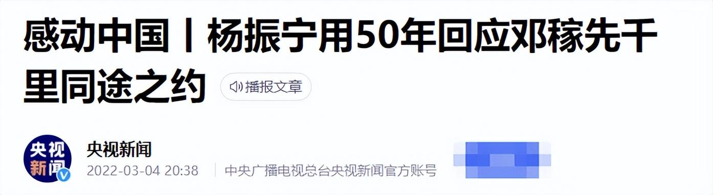与此同时,央视新闻也发表一篇“杨振宁用50年回应了邓稼先千里同途之约”。