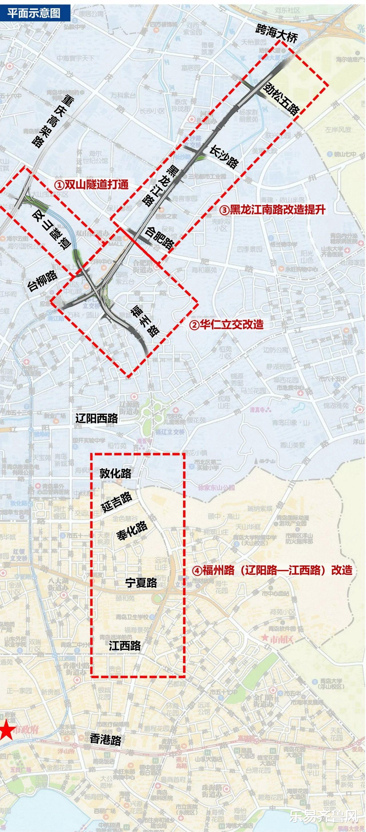 ①双山隧道打通:南起台柳路,北至重庆路,双向6车道。