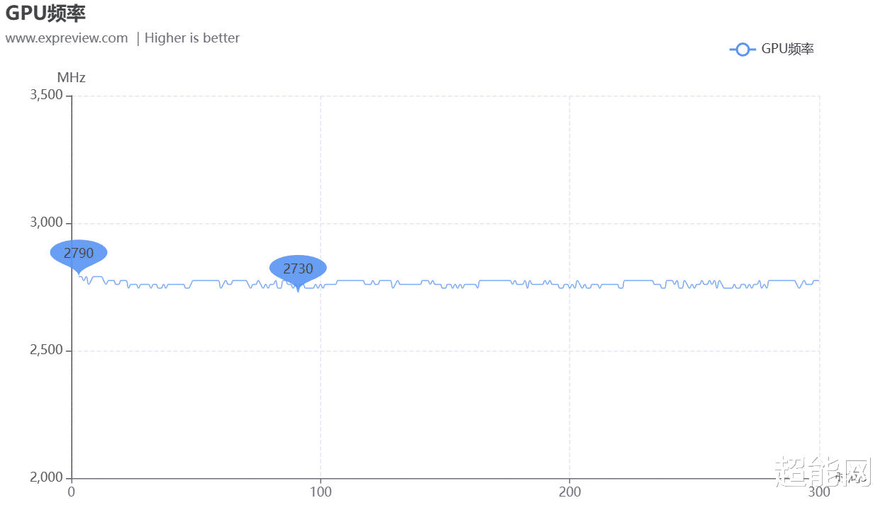 上图是在烤机时GPU的频率状况,可以看到GPU的最高频率能到2790MHz,而整体平均频率为2745MHz。