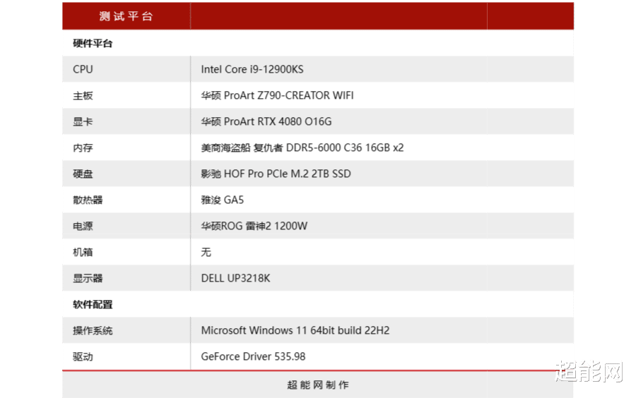 测试平台基于酷睿i9-12900KS处理器打造,采用DDR5-6000 16GB*2内存,而主板则华硕同系列的ProArt Z790-CREATOR WIFI,它与ProArt RTX 4080 O16G确实非常搭配。