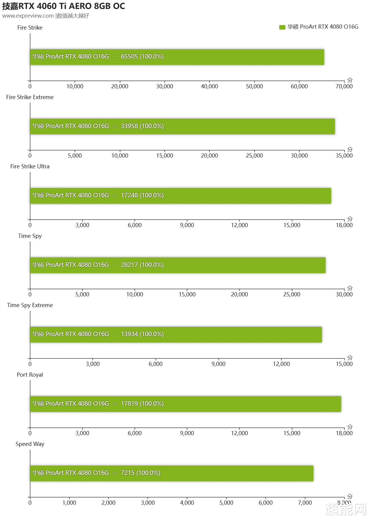 虽然说华硕ProArt RTX 4080 O16G是超频版显卡,它的超频幅度其实不高,所以它的性能其实不比公版高多少,当然了ProArt系列产品是面向内容创作者的,只要不是大幅度的频率变化就不会对生产力软件有明显性能影响。