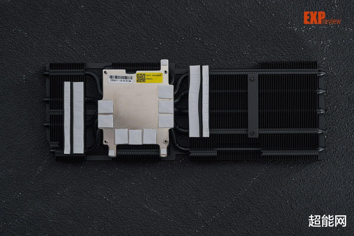 由于显卡只有2.5插槽,所以ProArt RTX 4080 O16G所用散热器肯定是会比其他RTX 4080更薄的,就需要设计得更为高效,散热器配备了5根6mm热管,采用回流焊工艺与鳍片结合,鳍片阵列均采用隐秘的黑色设计,与ProArt风格相得益彰。
