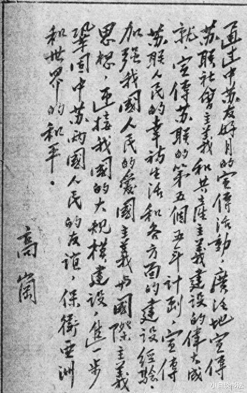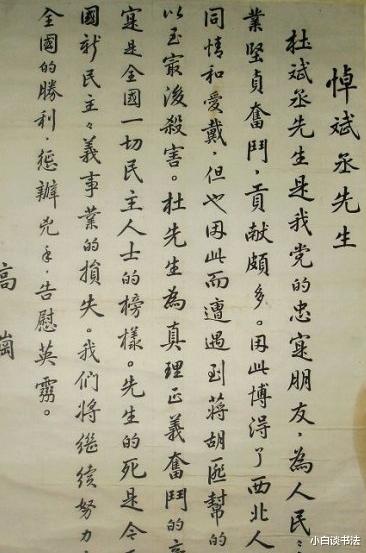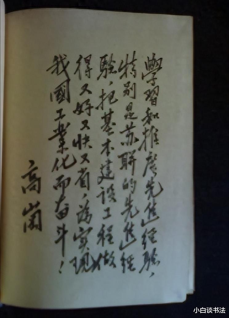 这幅楷书,笔法娴熟,笔画端庄大方,高岗同志有如此水平,可称得上是书法家了。