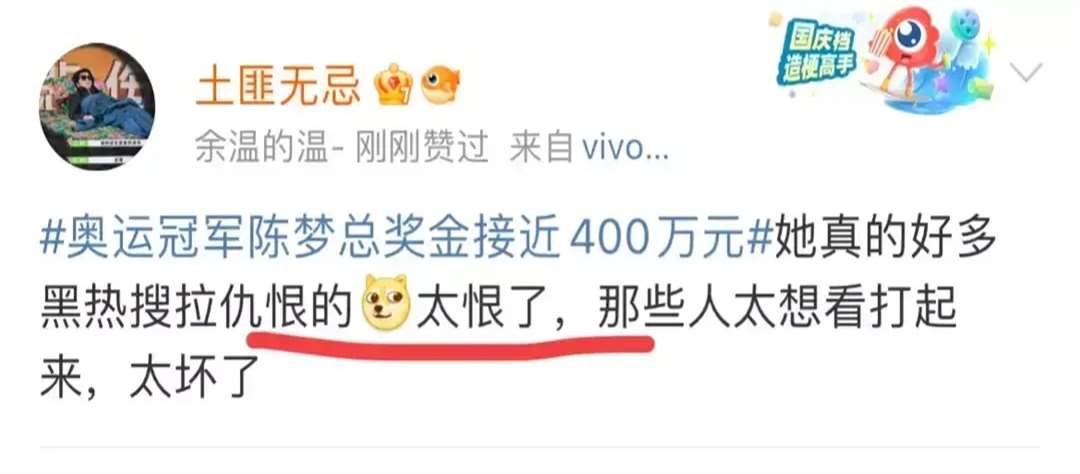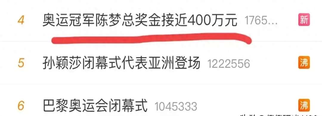 在这样的背景下,陈梦的奖金问题被推到了风口浪尖。即使我们假设她的奖金确实接近400万元,这是否真的值得如此大的争议呢?