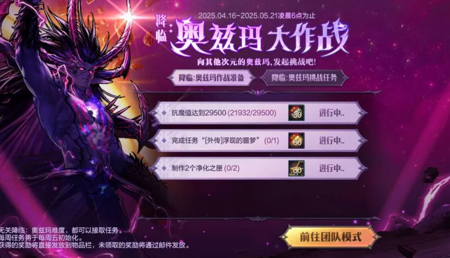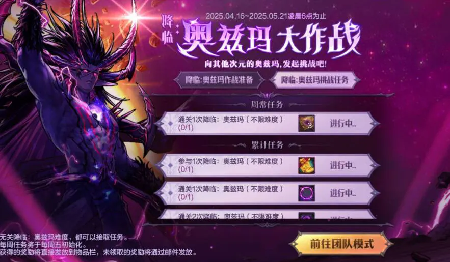 【挑战任务】每周通关1次降临奥兹玛,可领取3个强化器,