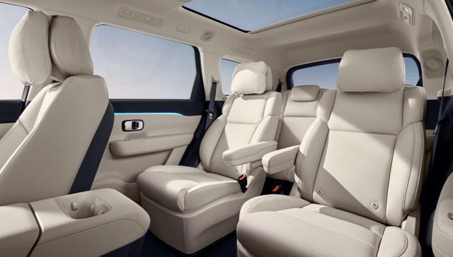 针对鸡肋的第三排,凌派C16也能给到最舒适的乘坐体验,双独立座椅支持电动调节/加热/通风等功能,再配合二排右侧小桌板、15.6英寸吸顶屏、21扬声器的高级音响系统、杜比音效、256色氛围灯、双层夹胶玻璃、后排隐私玻璃、三温区独立空调、带遮阳帘的全景天幕,C16为了做到“排排皆享受,座座皆舒适”,做了“从头到脚”的细节设计。