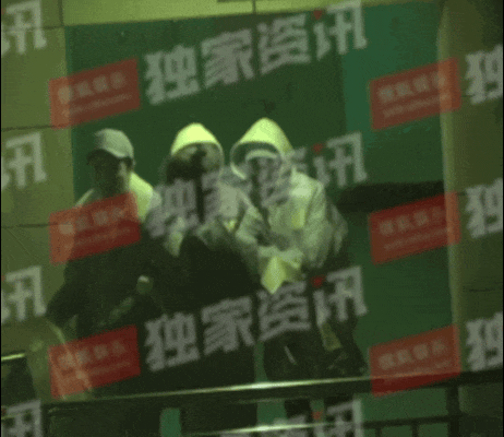 晓彤(右一)是带着鹿晗品牌的帽子的