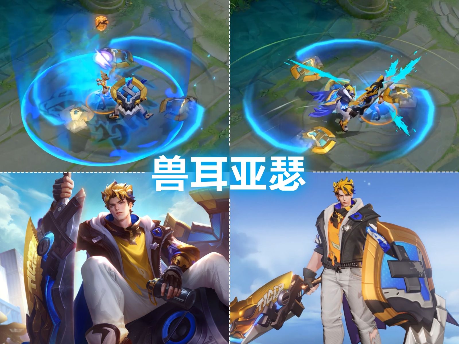 最后说一款就是亚瑟的动物派对这款皮肤了,他是和AOV联动而推出的一款限定皮肤,设计那也是非常的独特呢。这款皮肤用的是蓝色主色调,还在释放大招时,在地上留下一个狼头图案,非常的霸气了。
