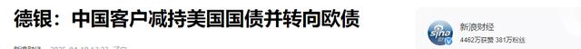 新浪财经 德银:中国客户减持美国国债并转向欧债