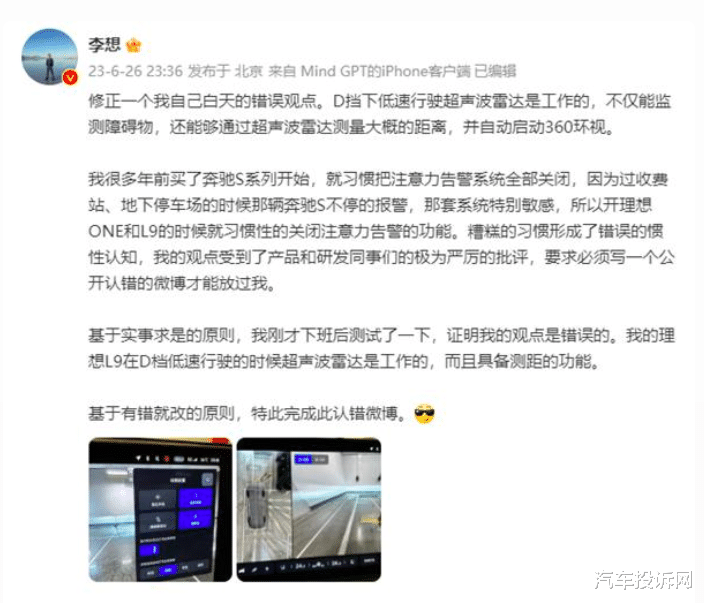 虽说李想承认了当初自己所发表的观点存在错误信息,但是且并没有提及为何这位车主在驾驶车型时会出现警报没有反应的问题。但遗憾的是,如今该车主所发表的投诉内容以及理想最开始的回应都已经删除,自然也难以了解到事情的真相就是是何。
