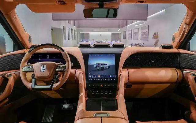 外观设计上,仰望U8L可谓别具一格。它采用了曜石黑与日曜金的双色车身设计,极具视觉冲击力。车头配备了大尺寸的格栅和前脸的“鼎”式设计语言,使得整车的辨识度飞速提升。车尾的设计更让人印象深刻,其巧妙地把备胎藏于车身内部,既美观又实用。这样的设计理念充分体现出中国品牌在吸取国际设计精髓同时,展现自身独特的文化符号。