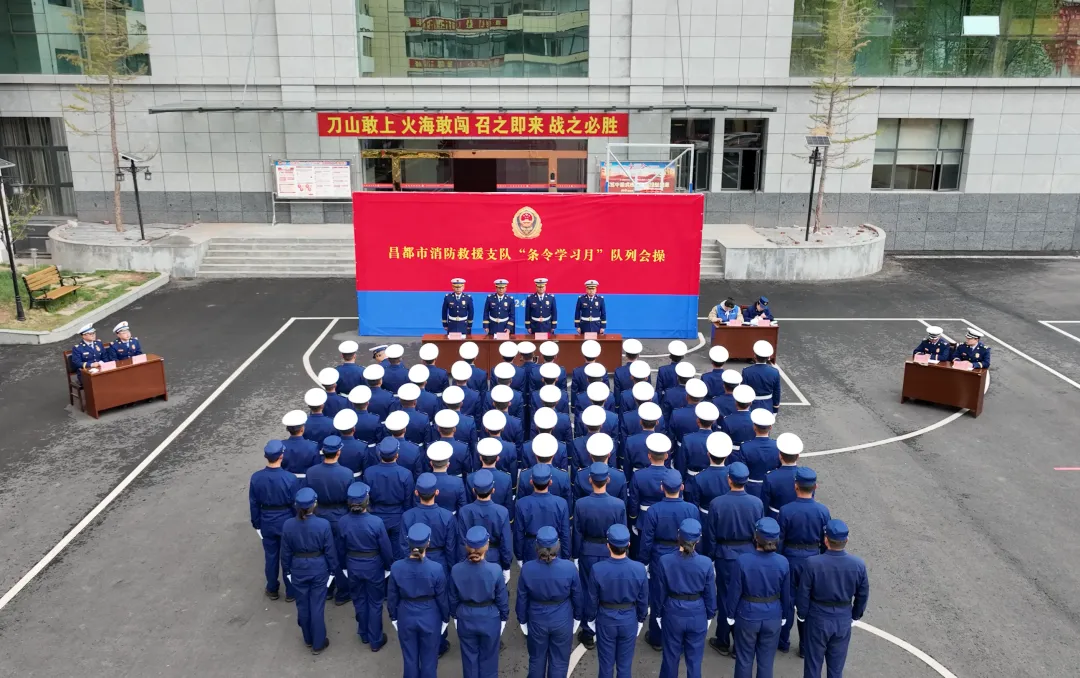 为检验“条令学习月”学习教育成果,进一步强化指战员条令意识、队列素质和作风养成,激发全市消防救援人员学习热情,近日,昌都市消防救援支队隆重举行全市消防救援队伍队列会操比赛活动,全市17支代表队共170名指战员分别通过线上、线下相结合的方式参加,支队主官及党委班子成员亲自出席活动并参与比赛评分。