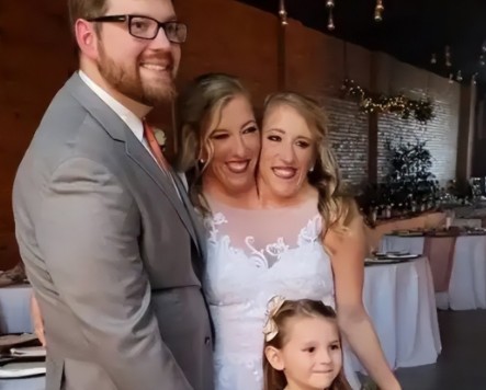照片中可以看到,连体姐妹和丈夫还有丈夫和前妻的女儿幸福地站在一起,一家人很是幸福,不过,还有一个大家很好奇的问题,那就是孩子到底是算谁的?